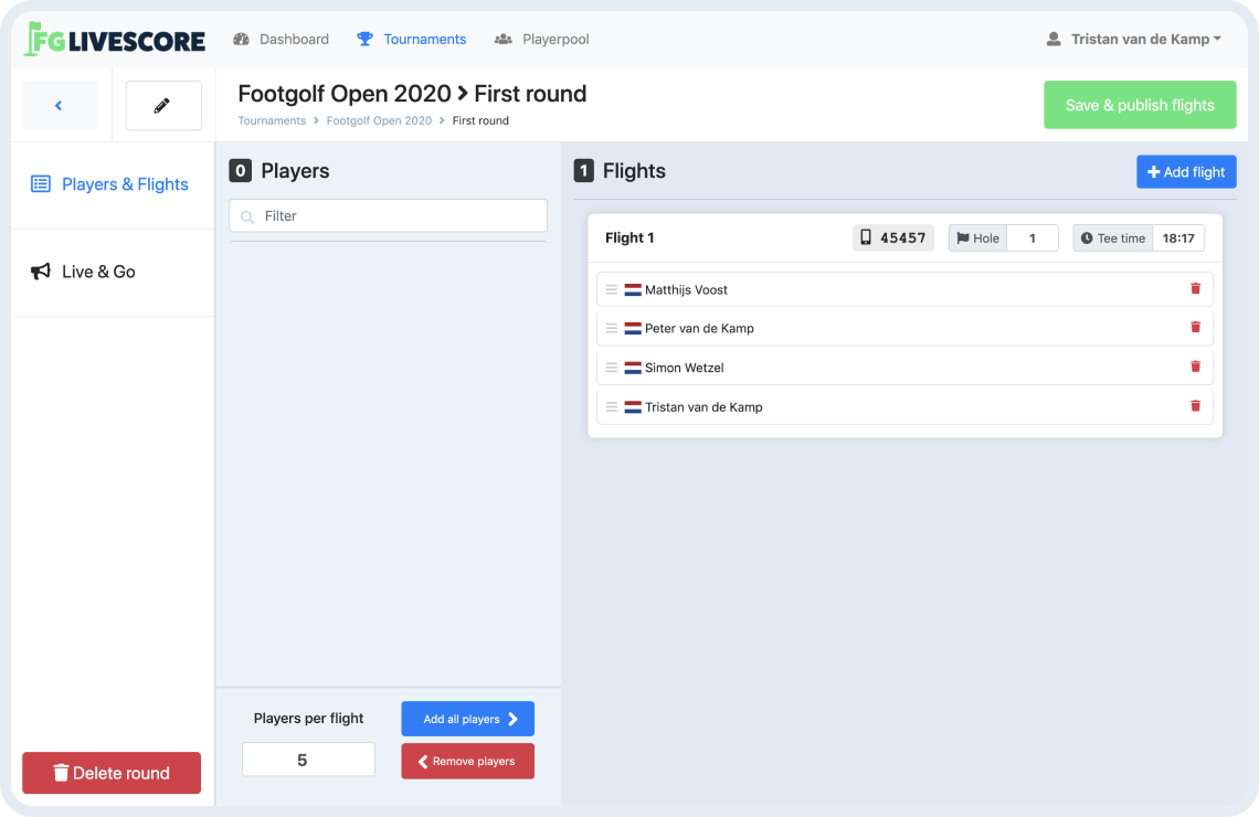 - Manage the scores for your flight